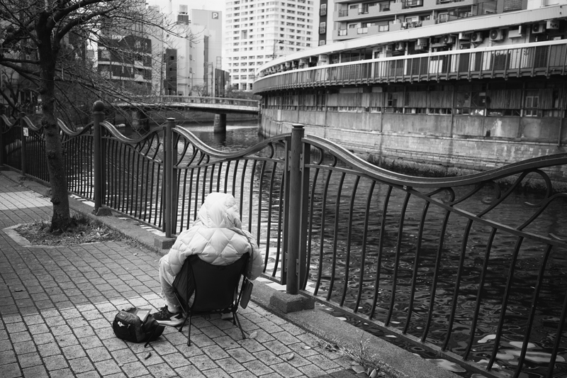 横浜風景2896 RICOH X Facebook はてブ LINE コピー 2025.12.01 中区福富町 ricoh gr3x 大岡川、この時期はいろいろな場所で絵を描いている人を見ます。邪魔をしないように後ろからそっと。